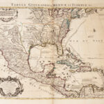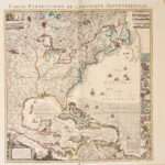 On peut également relever la Carte de la Louisiane et du cours du Mississippi de Delisle, illustrant les possessions françaises et les nombreux affluents du fleuve, notamment le Missouri, alors envisagé comme une voie possible vers la mer de l’Ouest. Mise à jour pour intégrer la Nouvelle-Orléans, elle constituait, lors de sa parution initiale en 1718, la première représentation détaillée du golfe et du Mississippi, ainsi que la première à illustrer les explorations de De Soto, Cavelier, Tonty, Moscoso et Denis.